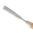 This chisel has a 95 mm long blade which is a high carbon vanadium-alloyed steel and comes very sharp and ready to use. It is mill finished and hardened to 61 Rockwell Scale. The thick Japanese Red Oak handle is comfortable to hold and features a strong steel hoop which is already seated well into the Oak. It's integral design allows this chisel to perform under high impact.