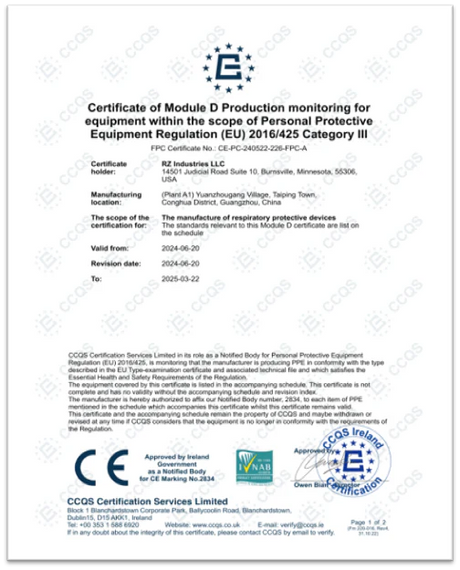 RZ Mask CE Certified RZM3 FFP2 MASK 94% Filtration Easier Breathing