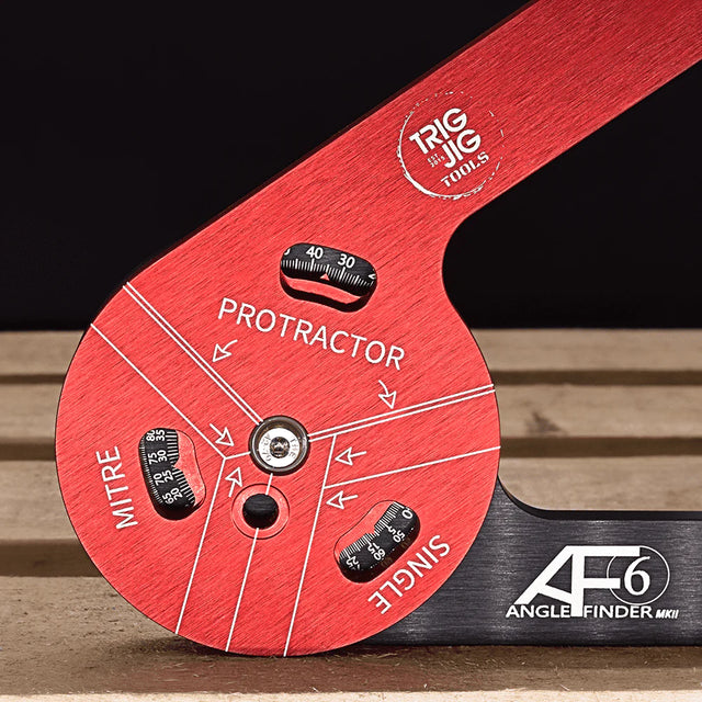 The AF6 MKII still has the same great Triple Display Design to show the protractor, mitre and single butt joint angles that can be transferred directly to your mitre saw. It also features an extra scale for use with a pre-cut 45-degree block to enable more acute angles to be cut on the mitre or table saw. The AF6 Stubby version has a short arm ideal for tight and hard-to-reach spots too. Available individually or get the set.