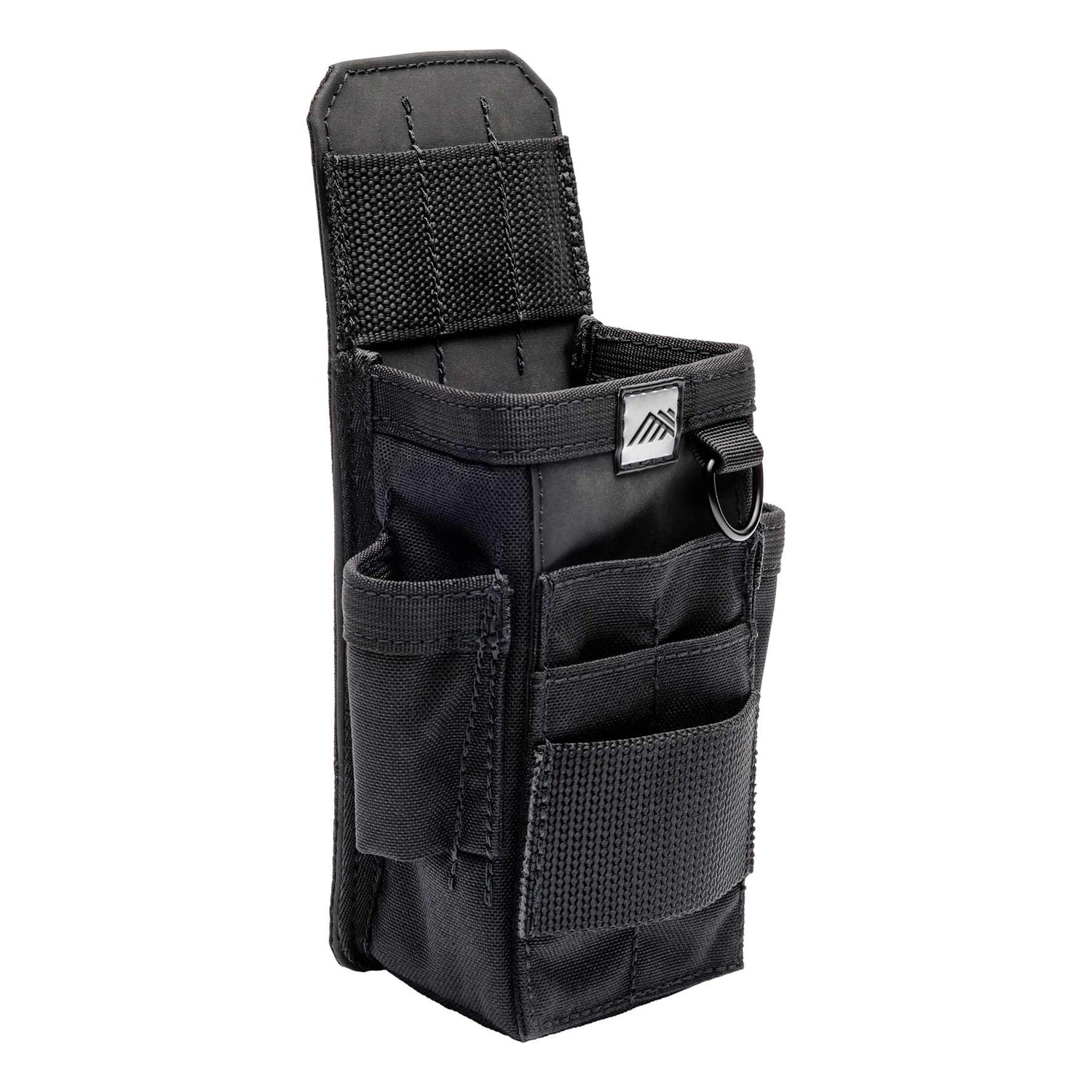 Exterior Quick-Access: The outside is all about speed. It features two driver slots, a dedicated knife slot, and a pencil slot for your most frequently used tools. A stiff webbing loop is perfect for a small tape measure, while a D-ring allows for the attachment of accessories like the Diamondback Tape Loop.
