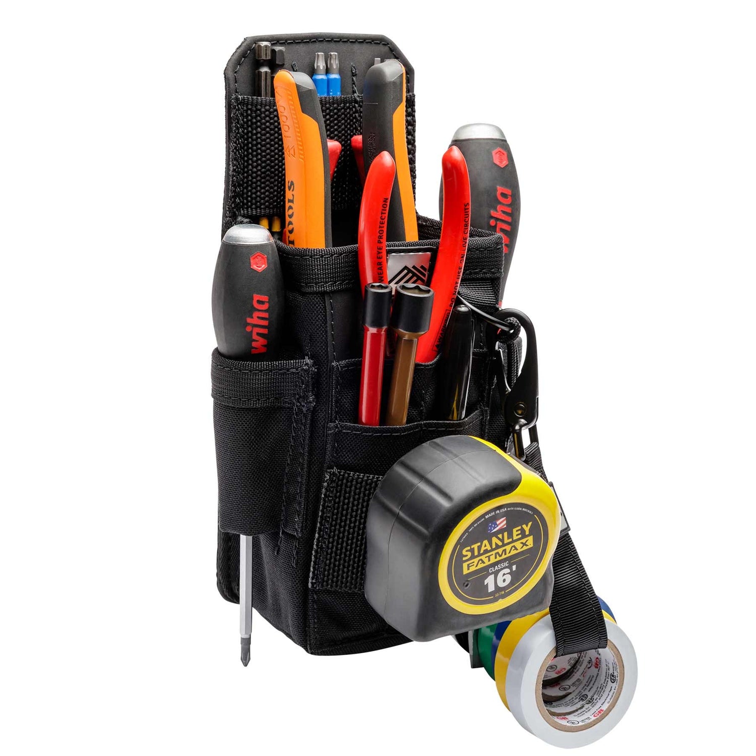Secure Interior Storage: Inside, you'll find a 3-slot bit index to keep your driver bits from getting lost. A main pocket with an integrated divider is ideal for organizing larger hand tools, testers, or fasteners.