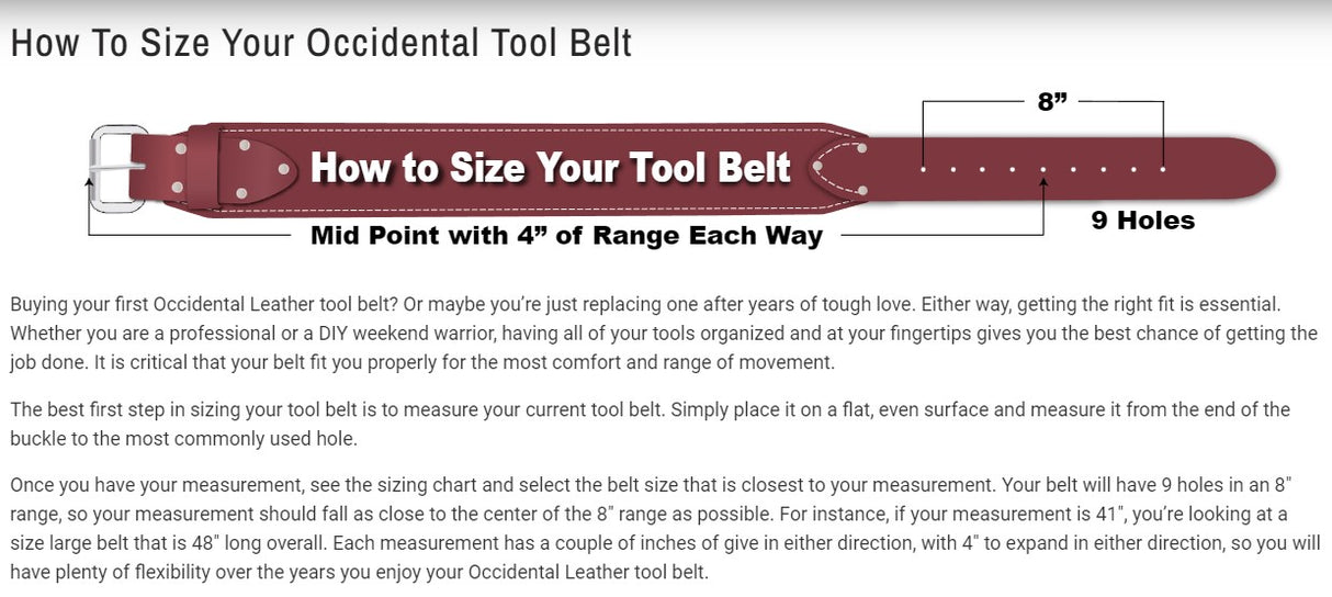 For an optimal fit, there should be 2″ to a max of 6″ of open space between your belt ends. For instance, if your measurement is 36”, you should go with a MD belt which will leave about 3” of open space. Keep in mind, if you prefer your bags to sit further back, order on the small side.