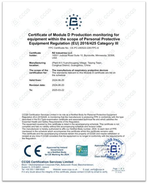 Certified FFP2 Protection You Can Trust: Using genuine RZ replacement filters is the only way to ensure your mask maintains its official certification and protection level.