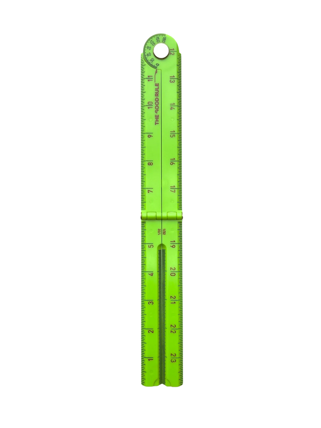 Inspirada en herramientas de calidad de la vieja escuela, The Good Rule es para ti: el constructor, el creador, el creador. Diseñada con dimensiones que se adaptan a la forma en que construimos hoy y concebida para que todas tus buenas ideas, planes ingeniosos y proyectos personales se concreten.