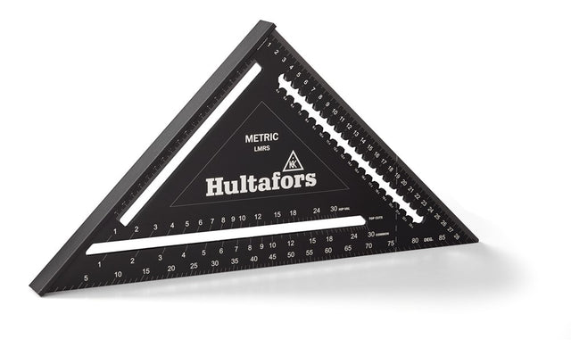La escuadra para cabrios es una herramienta robusta y versátil para todo tipo de artesanos. Cuenta con un cuerpo sólido de aluminio con bordes mecanizados por CNC para mayor precisión y durabilidad. Permite realizar marcas de 45° y 90° de forma rápida y precisa. Además, su borde grueso sirve como guía de sierra: se puede usar directamente con la sierra contra la escuadra para cortes transversales o en ángulo. Esta herramienta, sumamente versátil, también se puede usar indirectamente, utilizando las muescas de trazado para crear una línea de lápiz o para cortar yeso con un cúter. La escuadra para cabrios Hultafors también se puede usar como transportador, para localizar y marcar fácilmente diversos ángulos comunes. La herramienta cuenta con escalas para cortar limatesas, limahoyas y cabrios de media caña.