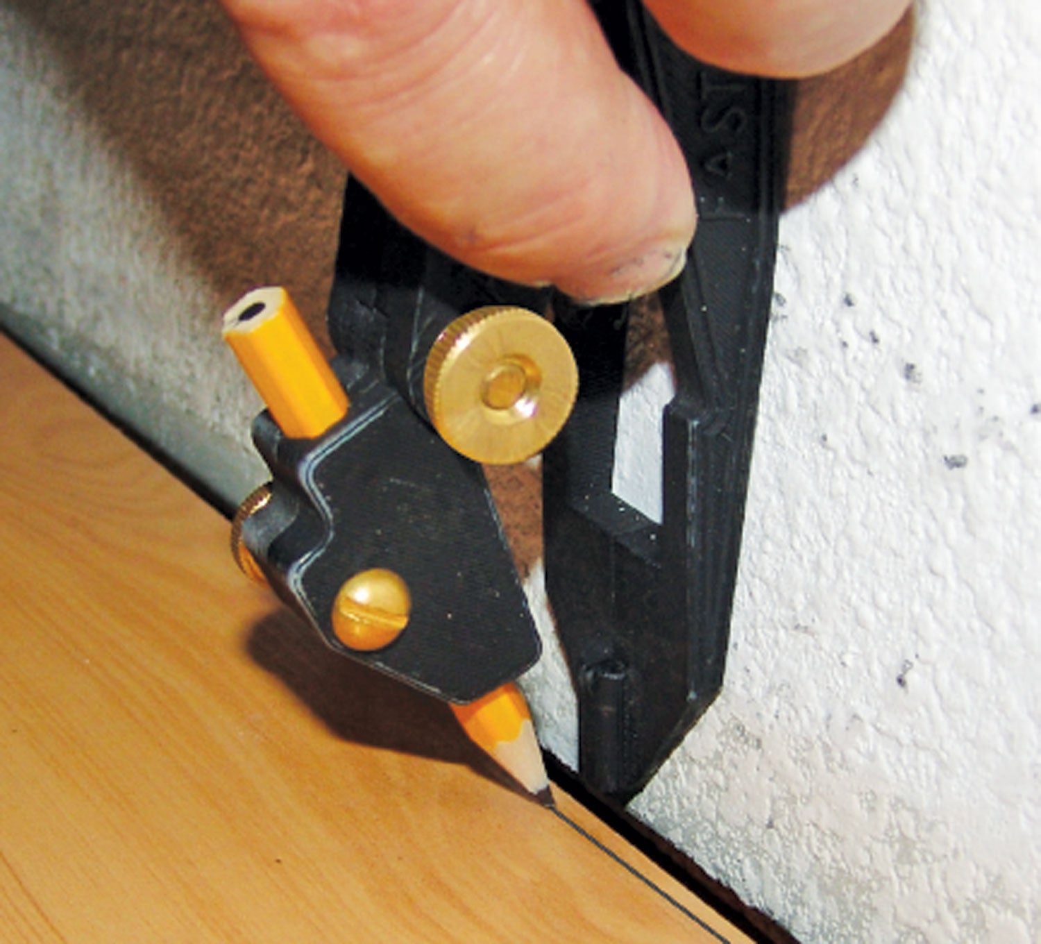 The AccuScribe Pro makes it easy to maintain a consistent scribe offset, staying parallel to the object surface every time. It is ideal for scribing trim on kitchen cabinets, architectural moldings, countertops, splash guards, tile and even flooring. Fits a standard pencil, Sharpie, or FatBoy Pencil.